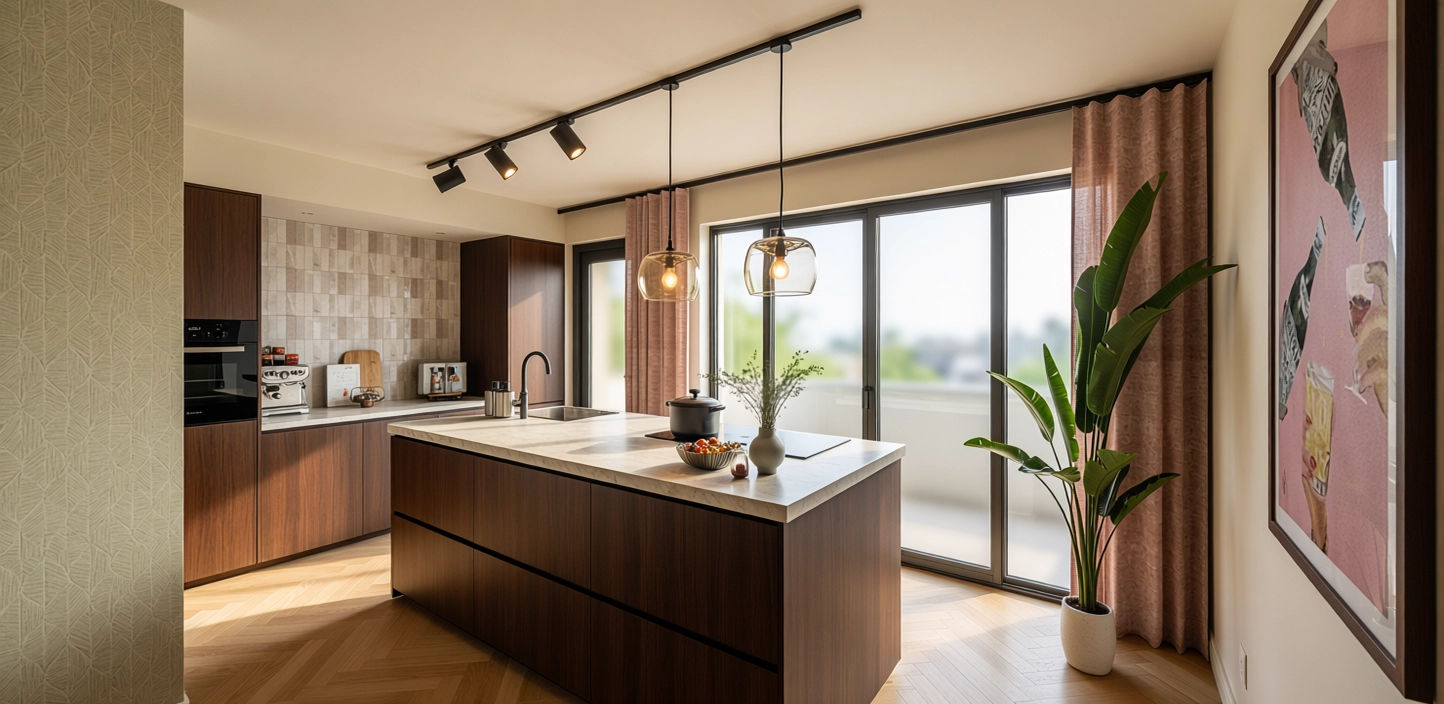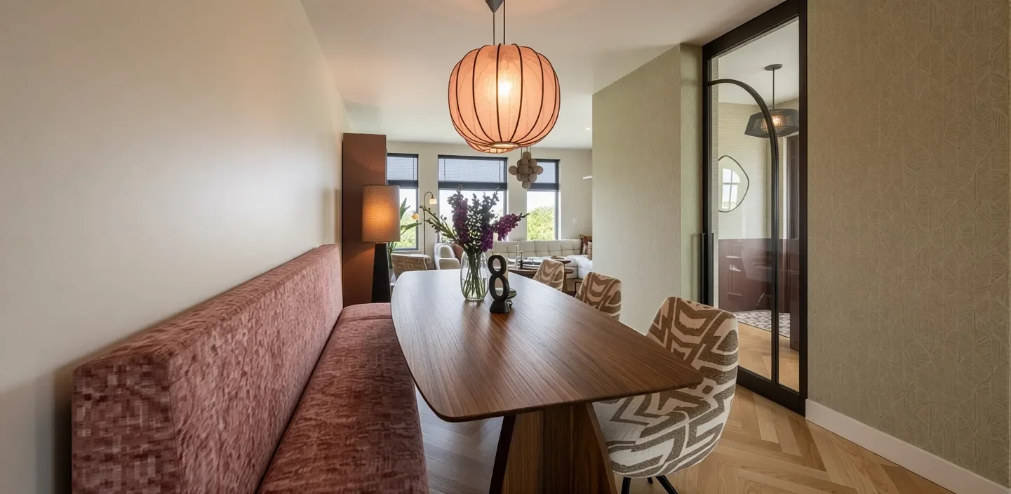 Voor dit huis heb ik de volledige woonkamer ontworpen, inclusief de keuken, eethoek en zithoek. Het eindresultaat is een warme en gezellige leefruimte waarin alles mooi op elkaar is afgestemd. De basis bestaat uit een warme beige kleur op de muren, aangevuld met zachte roze tinten. Groene accenten zorgen voor een stoerder contrast en brengen het geheel tot leven.